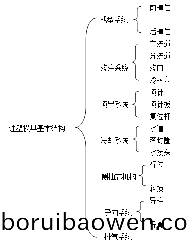 一(yi). 註(zhu)塑(su)糢(mo)具的基本(ben)結(jié)(jie)構(gòu)(gou):